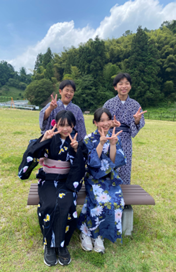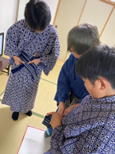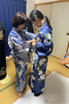 7月7日(月)弥栄中学校2年生の家庭科の授業で、小松原知子さんと岡山厚子さんに講師をお願いし、浴衣の着方からたたみ方まで教えてもらいました。いつもは着せてもらう浴衣ですが、今回は自分たちで着てみました!