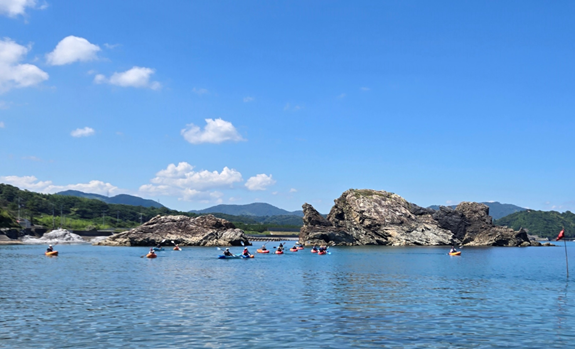 三隅町の田の浦海岸でカヌー体験と海遊びをしました。B&G海洋センターの方から水辺の危険についてお話を聞いた後、海遊びを楽しみました。