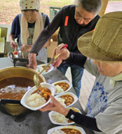 午後からは弥栄会館へ戻り、食改さんに作っていただいた美味しい昼食を食べた後、みんなでモルックをしました。